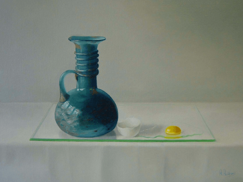Romeins flesje en ei op glasplaat